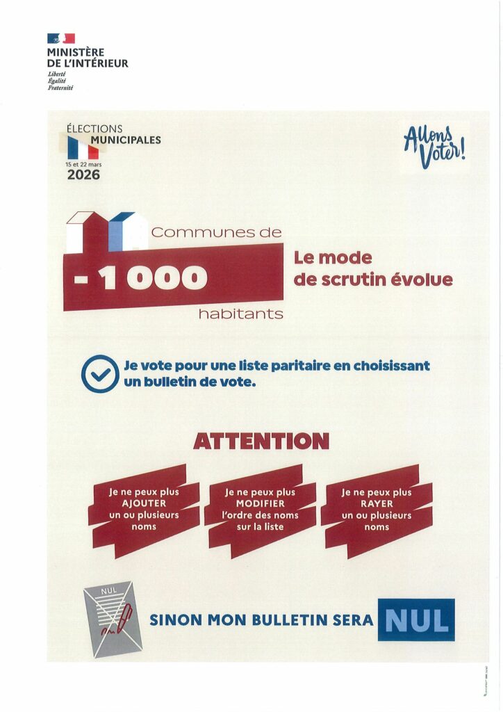 – L’inscription sur les listes électorales est possible jusqu’au 4 février 2026 en ligne et jusqu’au 6 février 2026 en mairie.